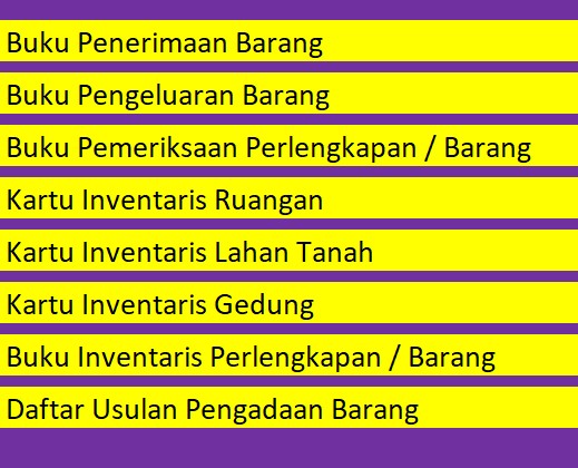 Membantu pencatatan sarana & prasarana Sekolah mulai dari Buku Penerimaan Barang, Buku Inventaris sampai daftar usulan pengadaan barang